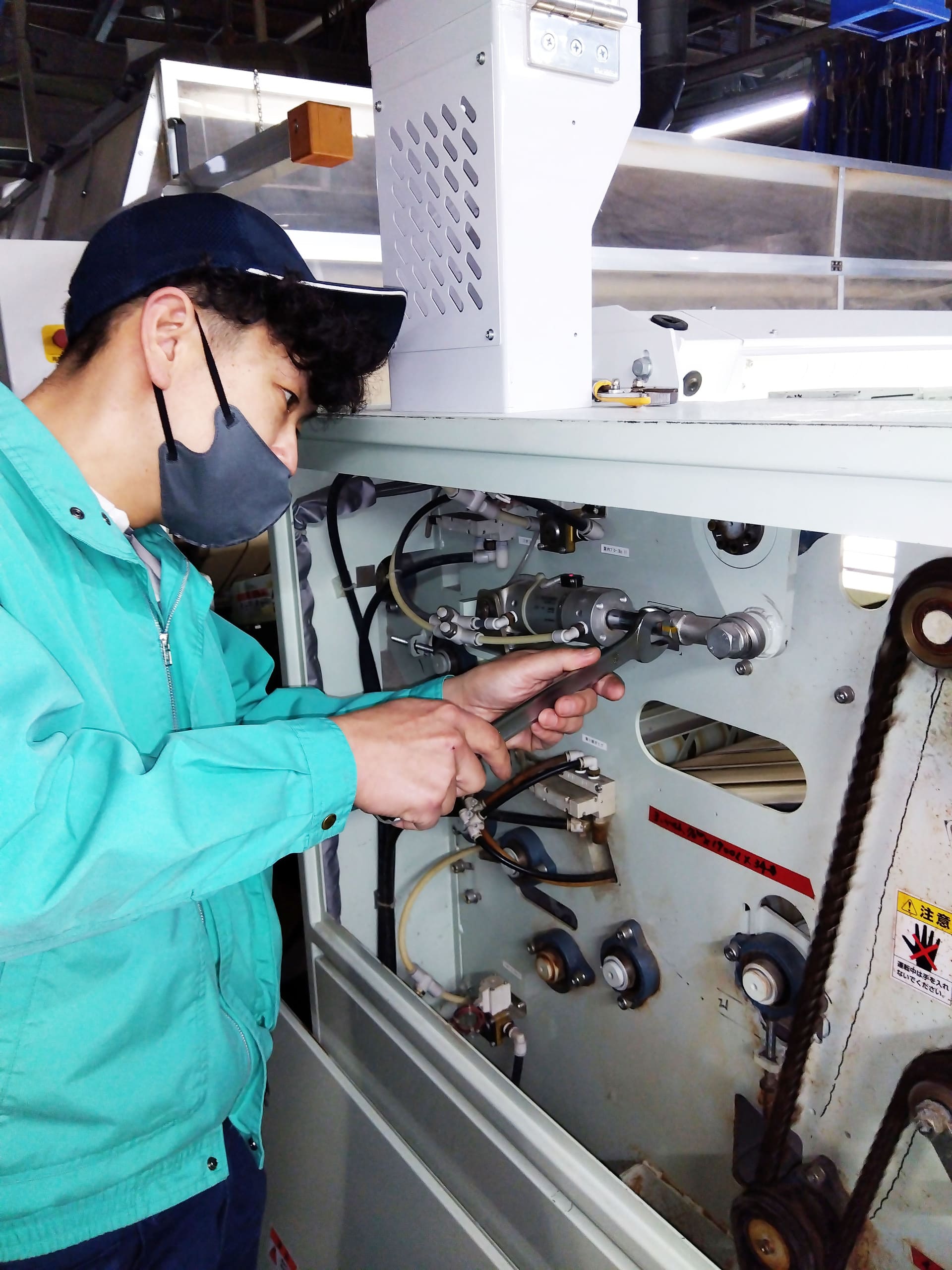 洗濯されたシーツ・包布・枕カバー・病衣などを機械へセットし、取り込まれた洗濯物がアイロンされ畳まれて出てきたら検品し出荷準備を行う、という一連の流れのポジションを担当しています。
