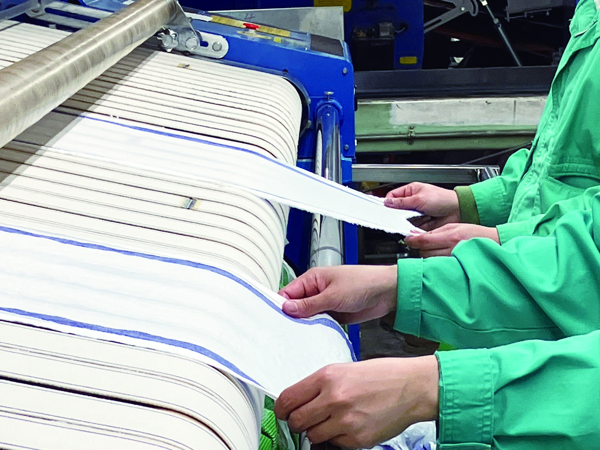 私たちが仕上げたリネン品を利用する患者さんが清潔な寝具、病衣で過ごしていただけるよう、汚れや破れが無いか確認することを特に気を付けています。