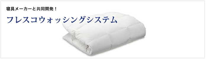 中元クリーニングの布団クリーニング、フレスコウォッシングシステムは、寝具メーカーと共同開発した安心の技術です。